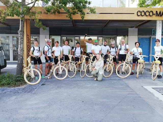 Sirocco coffee shop in Camps Bay gave us coffee for free as long as we park the bikes there for a while. It attracted attention from all passers by. The video below is the 2018 version where Gerald de Kock officially calls it the coolest bike in the race. Cocomat rewarded us with a week holiday in Greece.